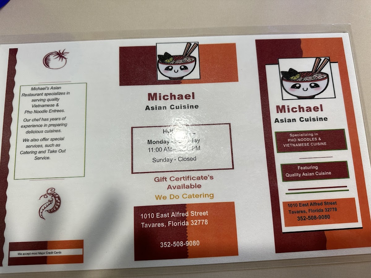 Welcome to Michael Asian Cuisine Menu, where the flavors of Asia come to life in every bite. Located at 1010 E Alfred St, Tavares, FL, this place offers an unforgettable dining experience. Whether you’re craving classic Chinese, savory Thai, or flavorful Japanese dishes, there’s something here for everyone. From the first dish to the last, each meal is crafted with fresh ingredients and bold spices that transport you straight to the heart of Asia. The variety on the menu is designed to cater to all tastes, from light appetizers to hearty entrees, ensuring a satisfying experience. With each plate, you’ll discover the perfect balance of flavors, textures, and aromas that make Michael Asian Cuisine a must-visit spot for any food lover.